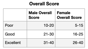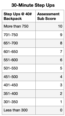 ** Note on Pull Ups … the Max Number you can use for scoring for this assessment is 20. So even if you tested at 25x pull ups, the most you can use for your scoring is 20.