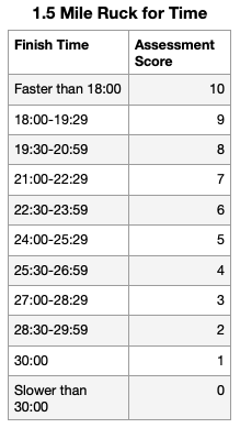 (6) Ruck 1.5 Miles for Time @ 75#, Flat Course