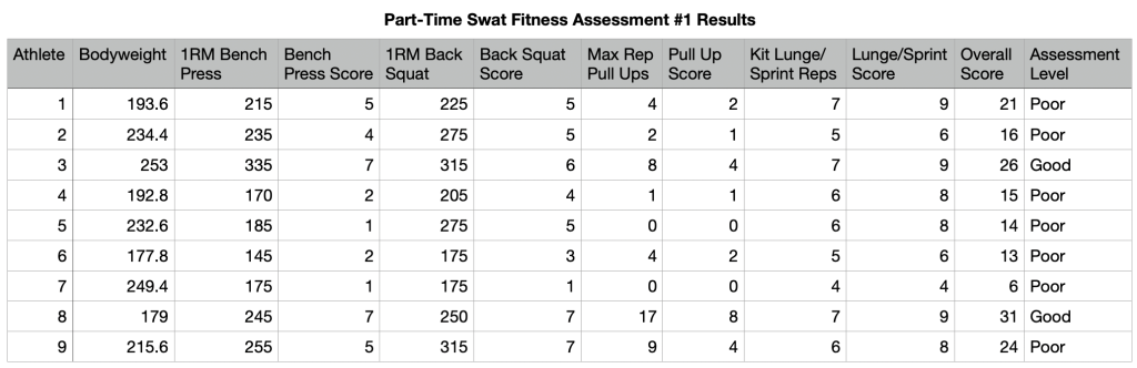 In conversations with the Deputy, it became clear that the most effective approach wasn’t to implement a base fitness program, but rather to design a Part-Time SWAT Fitness Assessment that could be used as a foundation—followed by a focused training plan.