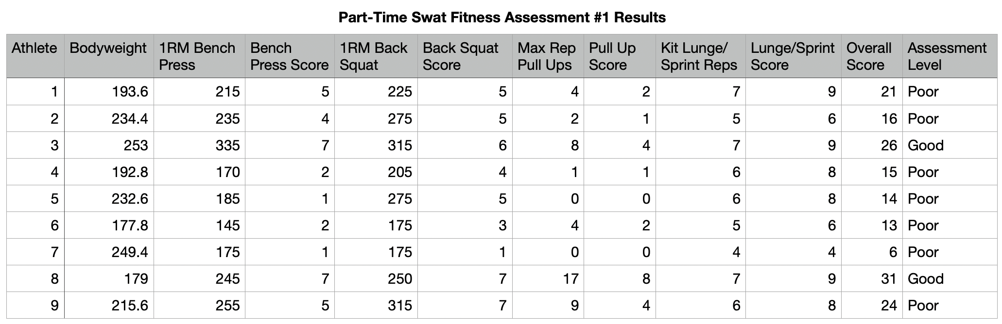 In conversations with the Deputy, it became clear that the most effective approach wasn’t to implement a base fitness program, but rather to design a Part-Time SWAT Fitness Assessment that could be used as a foundation—followed by a focused training plan.
