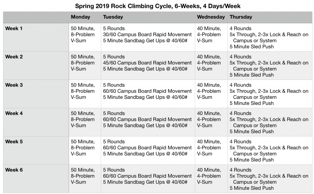 Moving forward … our Rock Climbing Pre-Season Training Cycle is due for an update, and I’ll model its update after the success of this cycle.