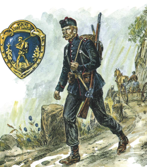 The Marsjmerket badge and a Norwegian Infantry Soldier, 1877 from the completion certificate.