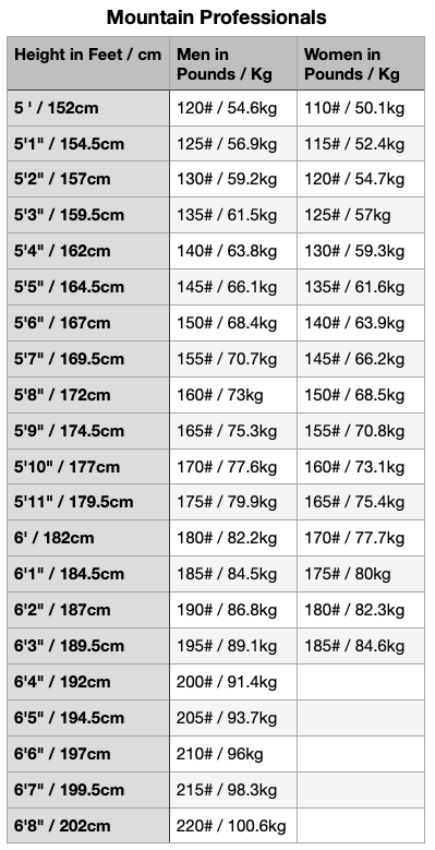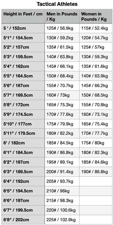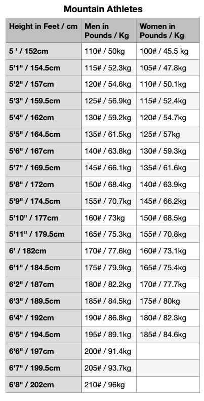 For years I’ve answered questions from individual mountain and tactical athletes and/or given unsolicited advice on a target bodyweight based on height, but until now, I’ve never formalized these ideal bodyweight targets.