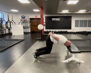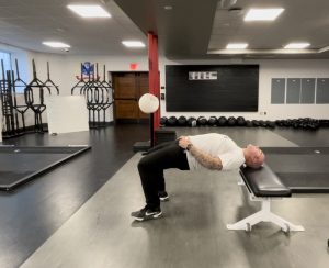 Neck bridges build postural strength in the neck, which helps reduce concussion risk. I like to do these on a bench, but beginners should start by doing them on the floor. Lay face up on the floor or bench with your knees up and bridge your hips up while balancing your weight on your feet and head. Hold for 5-10 seconds, lengthening the hold for 20-30 seconds over three weeks. Progress these by doing them face down, with the forehead and toes as the contact points.