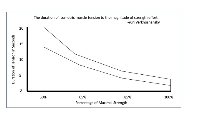 The effort being applied is subjective, but the closer the load is to the individual’s maximum strength, the shorter they can hold maximum tension.