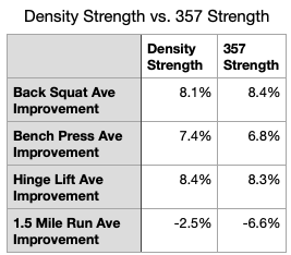Mini-Study: 357 Strength matches Density Strength in Strength Improvement; Outperforms for Endurance
