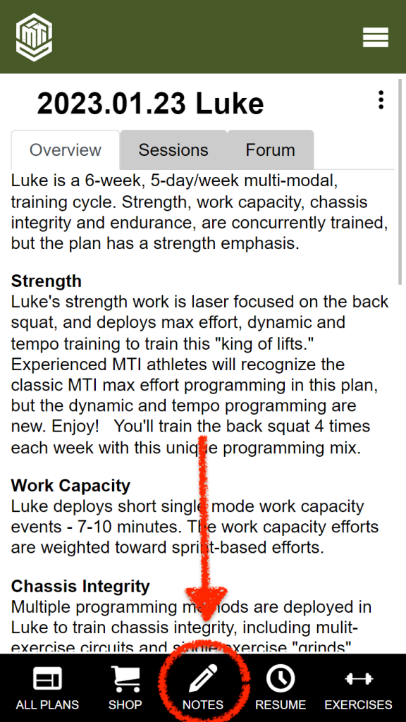 Previously, we had one cover-all notes option. Now, you’re able to make plan-specific notes for interval numbers, percentage-based loading, or whatever else while also maintaining the macro notes option for major fitness assessments.