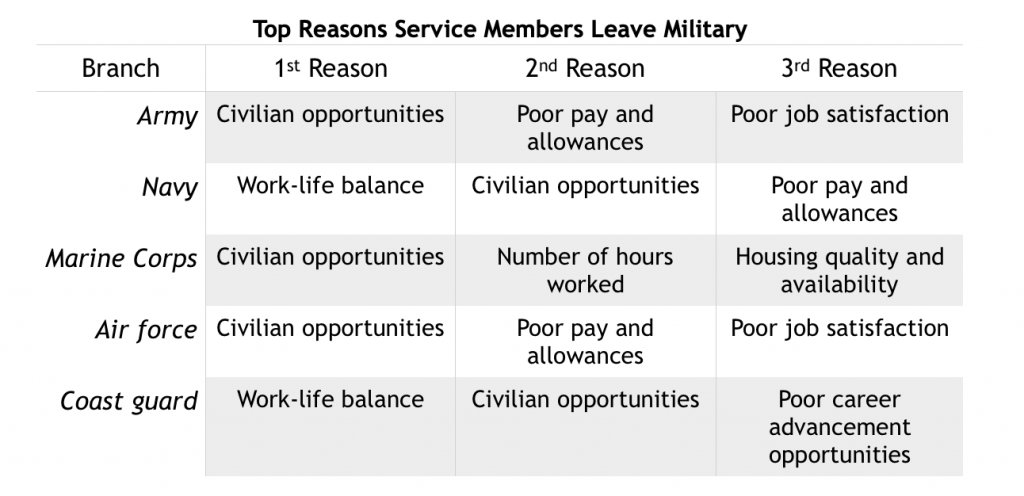 - Top three reasons for enlisted service members to terminate active service across all branches: