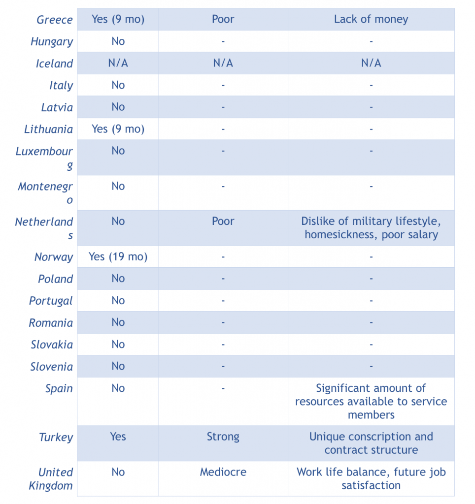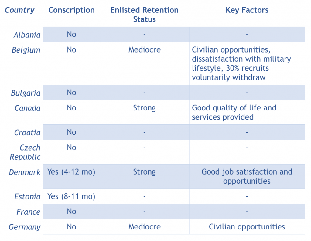 - NATO countries face very similar problems compared to the United States in terms of retaining enlisted personnel. The only notable exceptions are listed below: