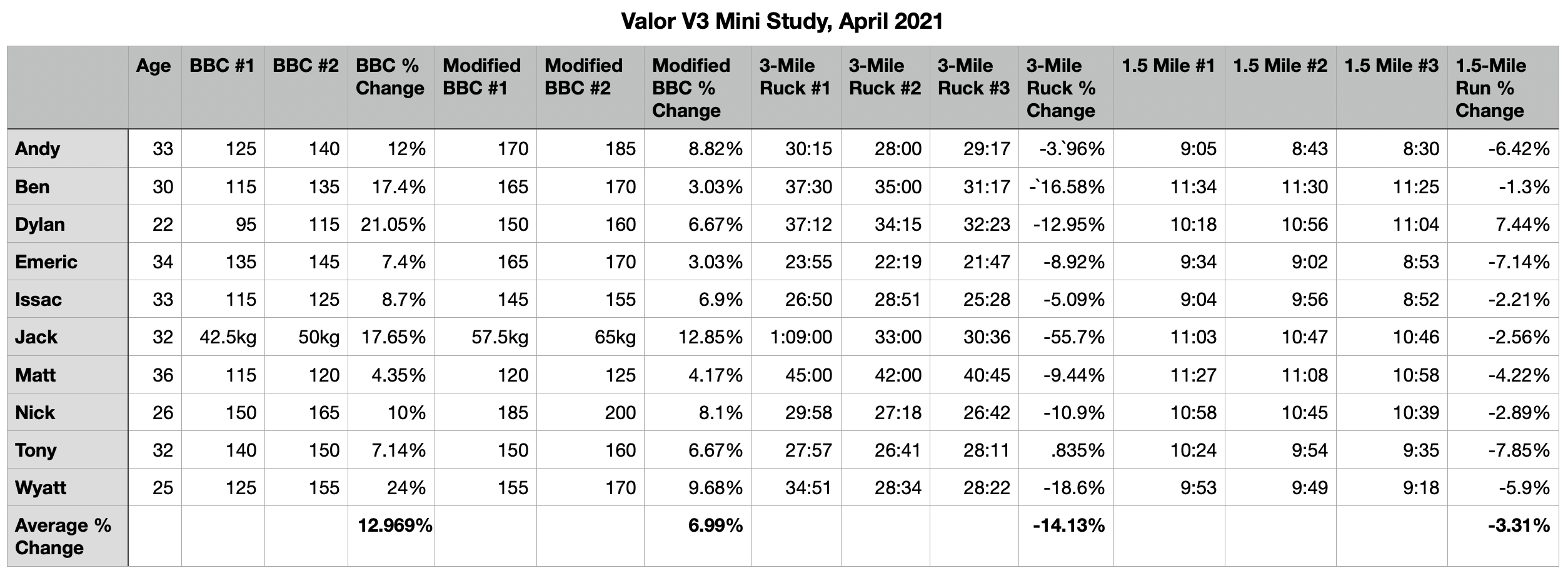 This 7-week Mini-Study investigated the tactical fitness building capacity of an update to Valor – one of MTI’s most well-known tactical athlete training plans.