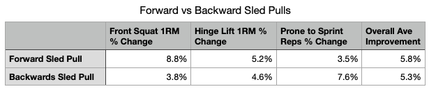 - A comparison between the strength and work capacity improvement potential between forward sled pulls and backward sled pulls.