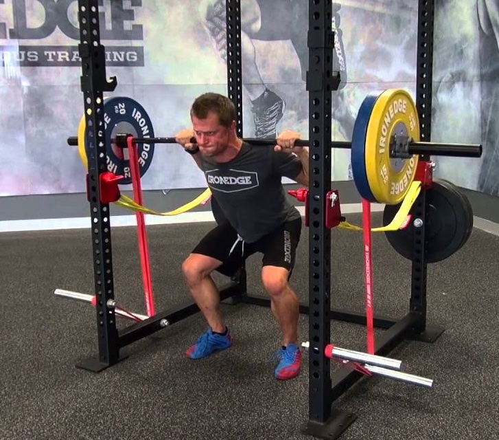In college basketball athletes, adding elastic bands (about 30% of total load) to barbell squats for 8 weeks produced a greater improvement in squat jump performance compared to traditional barbell squats. All other jump, sprint, and strength measures improved similarly in both groups. Max strength gains were equal, and eccentric utilization did not change.