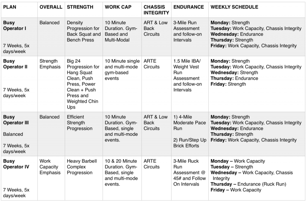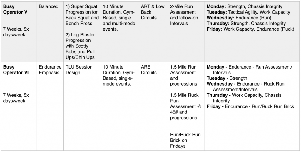 3. Both Series are designed as day to day programming for tactical athletes, but the Busy Operator Plans are designed for Tactical Athletes who can’t commit to train 60+ minutes per day.