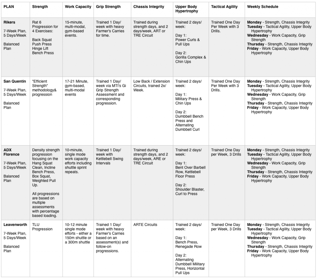 The Correctional Officer Training Packet of plans deploys MTI’s Fluid Periodization programming to build the day-to-day fitness training requirements of Correctional Officers. The plans in this packet are named after notorious US prisons.